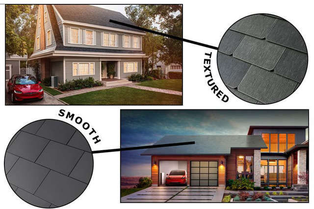 Mỗi loại có màu sắc và bề ngoài khác nhau nhưng chất liệu tạo thành và hiệu quả sản sinh điện năng thì gần như giống hệt nhau. Chúng đều trong suốt cho năng lượng mặt trời đi vào và chuyển hóa thành điện, nhưng với ánh sáng ngói Solar Roof sẽ phản chiếu lại để không cho ánh nắng chiếu vào bên trong ngôi nhà.